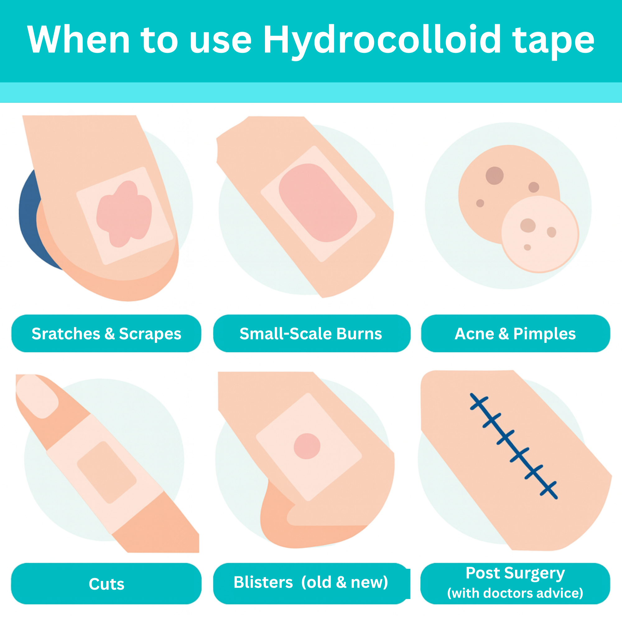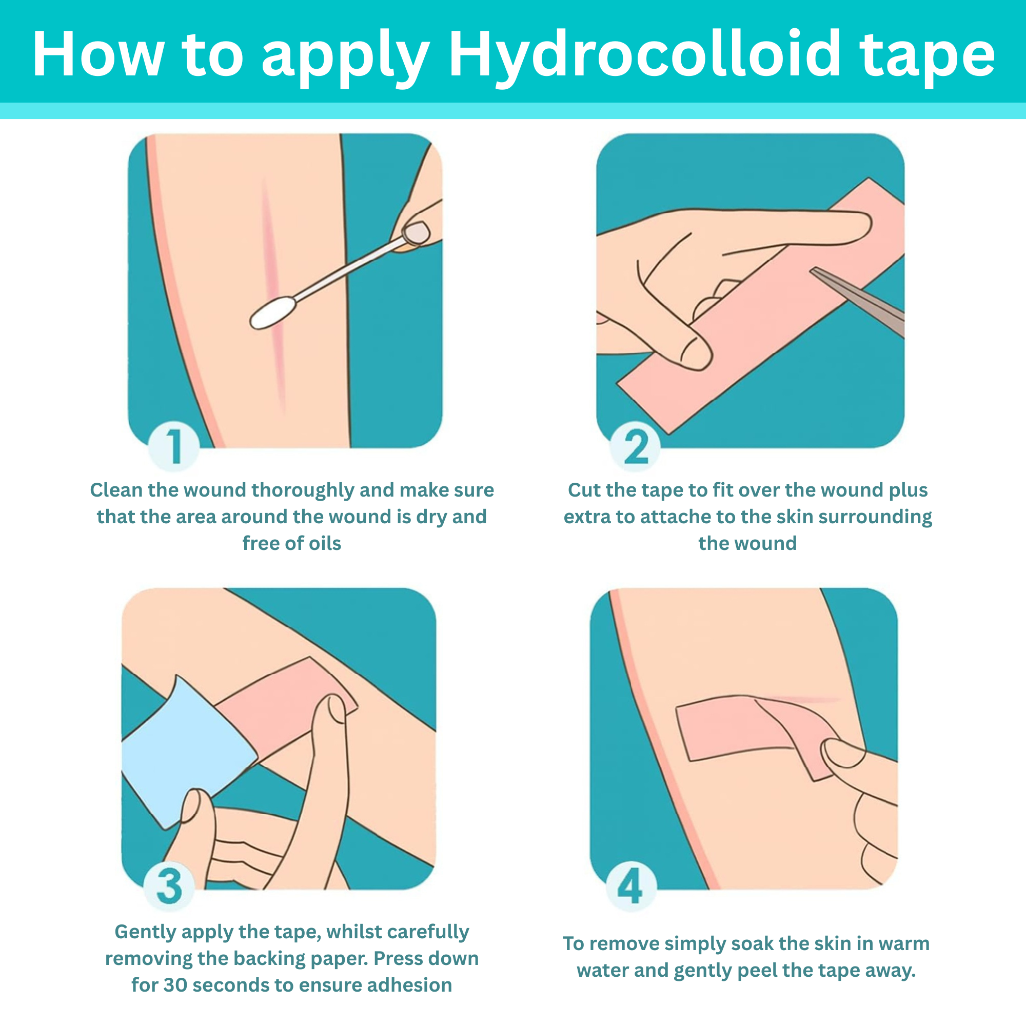 Protect and heal with our medical‑grade hydrocolloid tape designed for versatile wound care. This waterproof, self‑adhesive 5 m roll can be trimmed to any size, making it ideal for blisters, minor cuts, burns, surgical wound protection, and acne care. The advanced hydrocolloid formula absorbs excess fluid and forms a protective gel, creating a moist healing environment while shielding skin from water, dirt, and bacteria. Hypoallergenic and latex‑free for sensitive skin, it stays comfortable through daily activity, workouts, and showers.