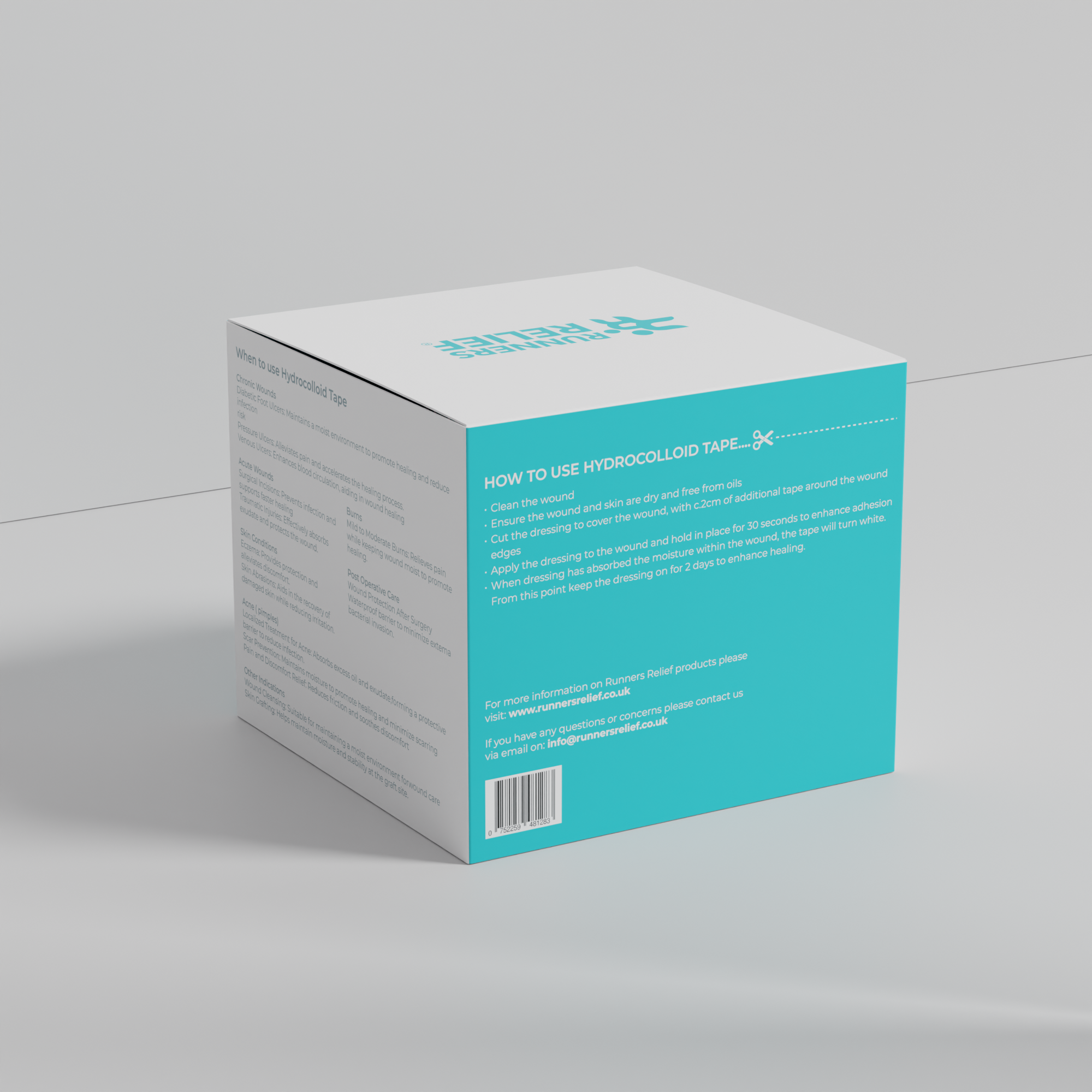 Runners Relief Medical Grade Hydrocolloid Wound Care Tape is a versatile, professional-quality dressing designed to support faster, cleaner healing across a wide range of skin injuries. Using advanced hydrocolloid technology, the tape absorbs excess wound fluid and transforms it into a soft protective gel, creating the optimal moist environment needed for effective healing while helping to minimise scarring.