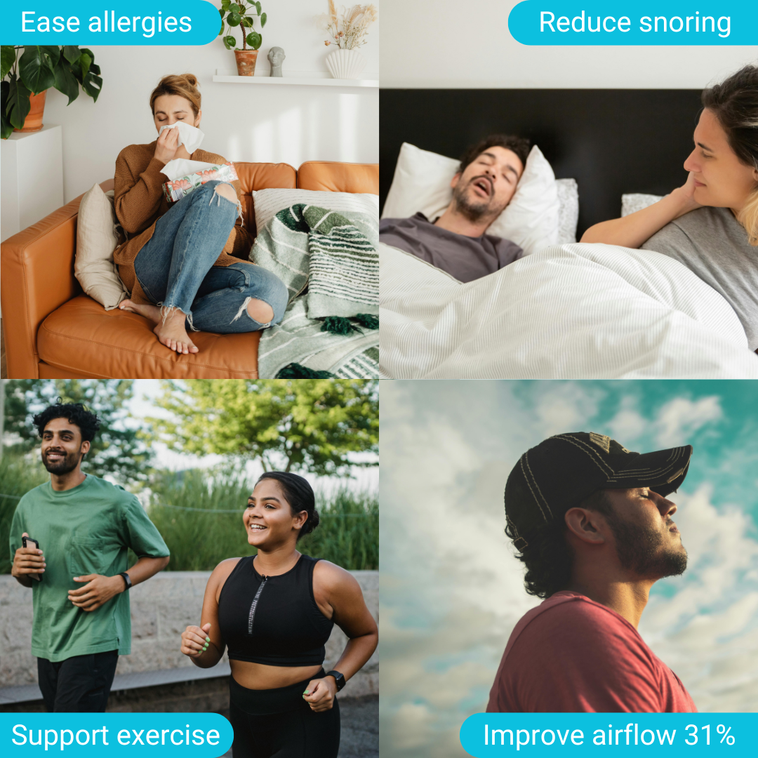 RUNSTRIPS are flexible transparent nasal strips with a spring-like band that gently lifts and opens the nose. This action allows improved airflow by up to 31%, it significantly increases the flow of oxygen and enables better breathing during exercise, sleep or day-to-day life.